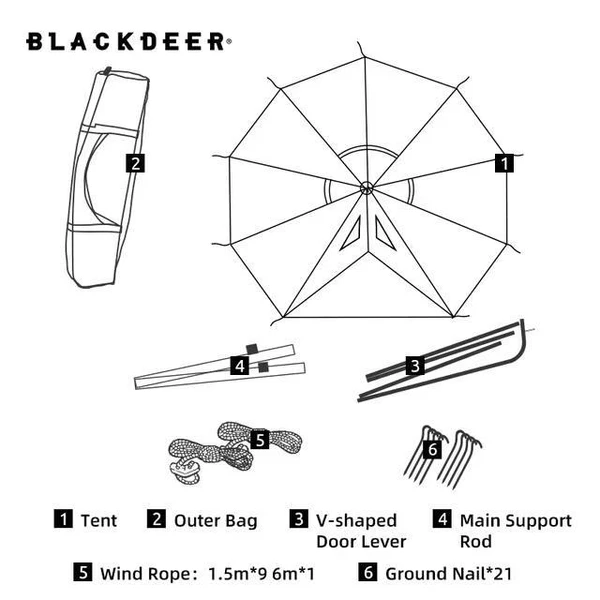 - ظرفیت: چادر های بلک دیر اغلب به صورت تک نفره تا چهار نفره عرضه می شوند. مدلBD12121137 به گونه ای طراحی شده است که برای12 الی 16 نفر به همراه وسایلی که همراه دارند مناسب می باشد.