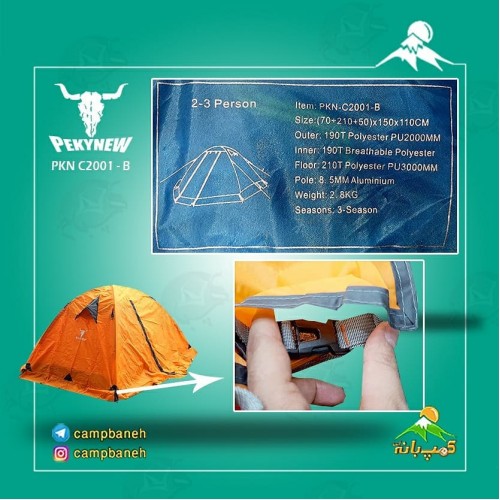 چادر کوهنوردی کله گاوی c2001B جدیدترین ساخته شرکت PEKYNEW در زمینه چادرهای کوهنوردی است. این چادر دارای رنگ زیبا، کیفیت بدنه عالی و بسیاری امکانات عالی در نوع خود می باشد. ظرفیت آن برابر 2 الی 3 نفره بوده و برای یک خانواده کم جمعیت و یا جمع دوستانه بسیار مناسب است.