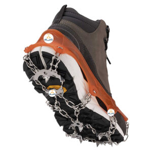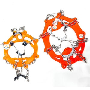 زنجیر کفش و کرامپون یکی از تجهیزات بسیار کاربردی و مفید در برنامه های کوهنوردی ، طبیعت گردی و کمپینگ سایر فعالیت زمستان در کوهستان میباشد ، استفاده از زنجیر کفش استاندارد به همنورد این امکان را میدهد تا به راحتی بر روی سطوح برفی و یخ گام بر دارد و شما می توانید این زنجیر کفش وکرامپون را با قیمت مناسب از فروشگاه کمپ بانه خریداری نمایید.
